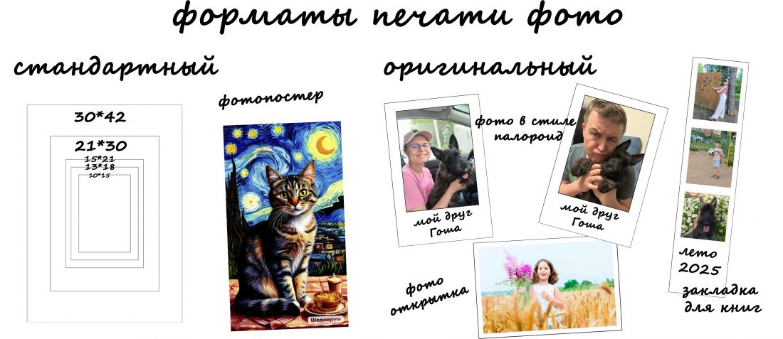 В нашем фотосалоне печатаем фотографии стандартных форматов: 10*15/13*18/15*21/21*30/30*42